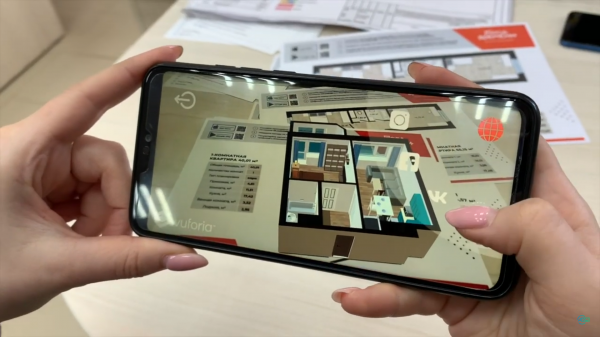 В безмаркерном методе дополненная реальность активизируется уже на любой поверхности. Как уже понятно из названия, маркеров тут нет, поэтому камера просто сканирует пространство и определяет параллельные и перпендикулярные поверхности, дополняя их виртуальными элементами. Работает технология на любой поверхности, но в реализации она сложнее.
